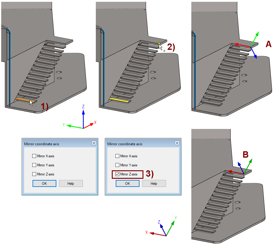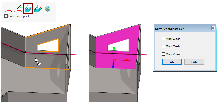 = Set local coordinate system in direction of line. Click to the line you want to be a temporary X-axis.