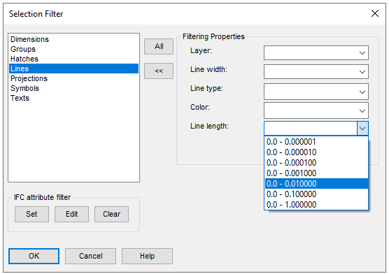 If necessary, press the Select button and click the reference element to filter the properties of the assigned elements.
