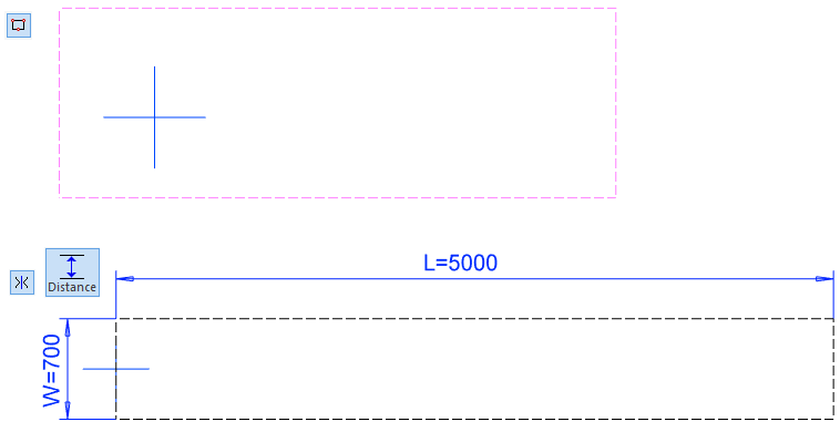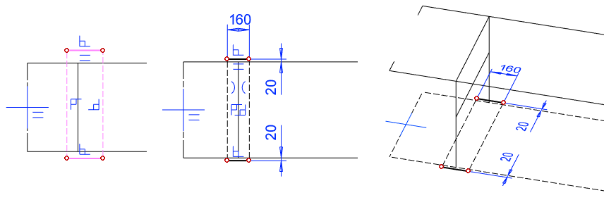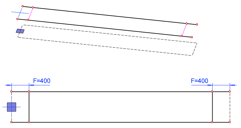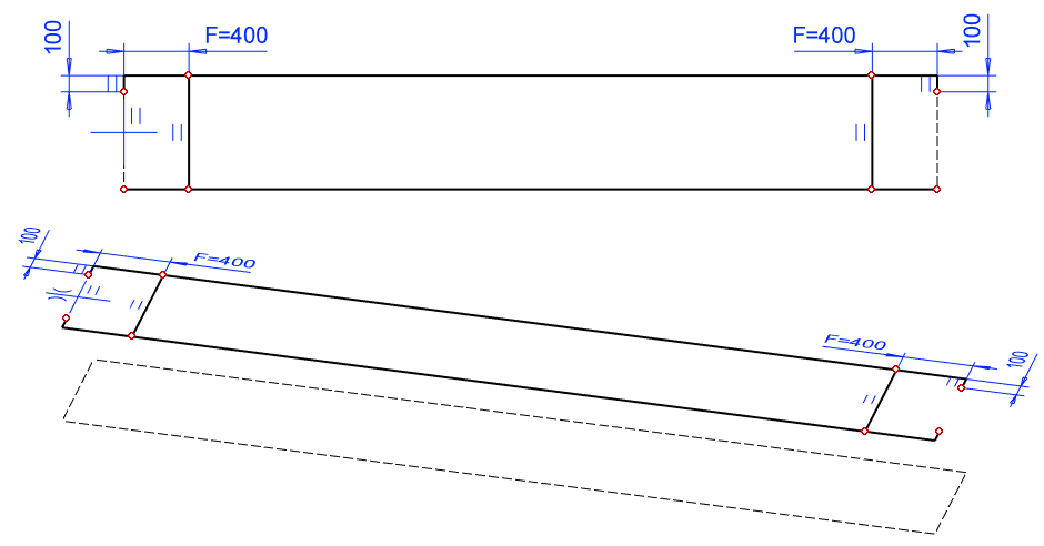 Sketch a 100mm long line at the both end of the long line. In the left figure.