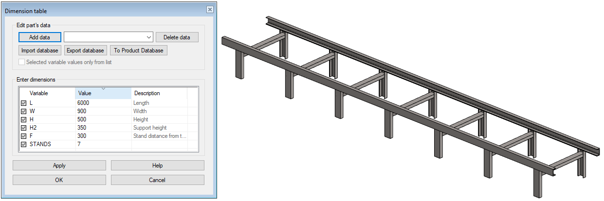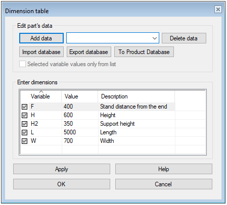 Edit the conveyor using the dimension table