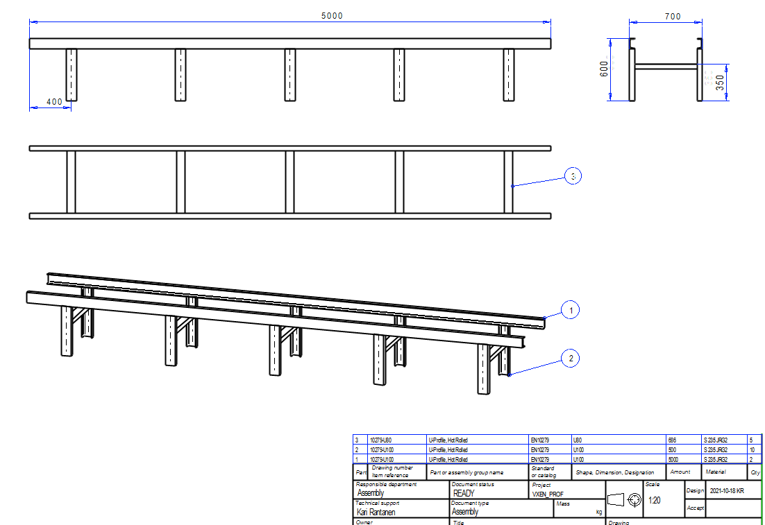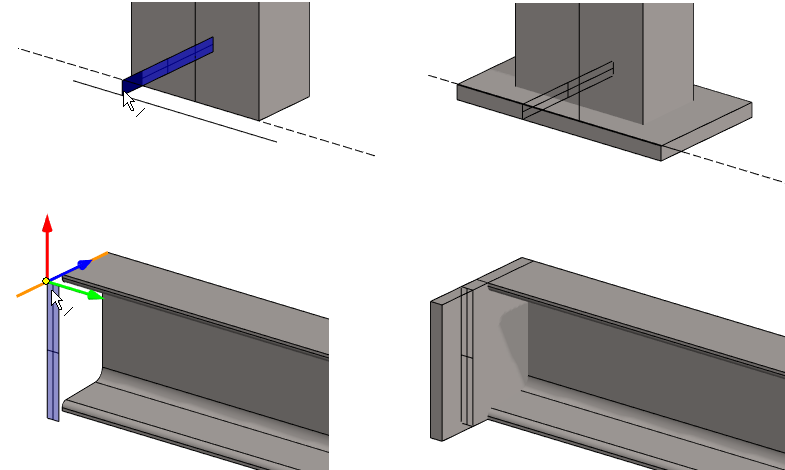 The main dimensions of the conveyor body were given in the sketch.The profiles must be positioned so that the main dimensions do not increase, so the default placement point (center point) is not valid.In addition, it is desired that the U-shape open in the direction of the center of the conveyor.