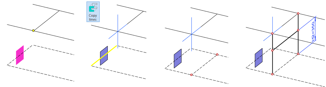 Function Copy lines or right-click function: Line > Copy to Sketch Plane