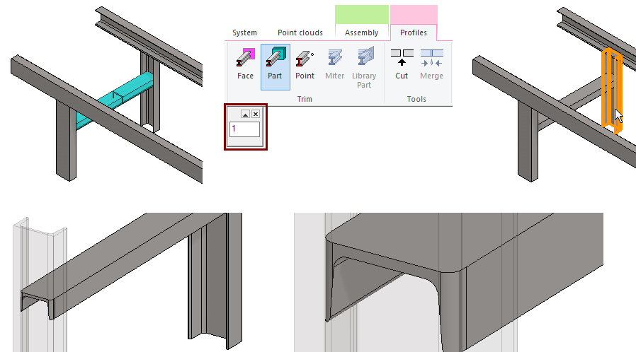 Function: Trim profiles to parts.