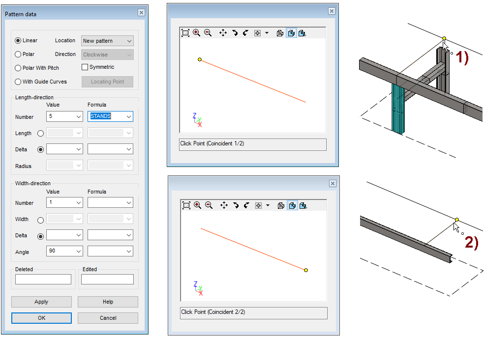 An auxiliary window appears on the desktop with a line and a dot and the program asks:Click Point (Coincident 1/2).