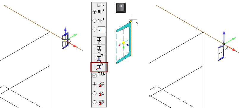 If necessary, F8 allows the attachment point to be changed.