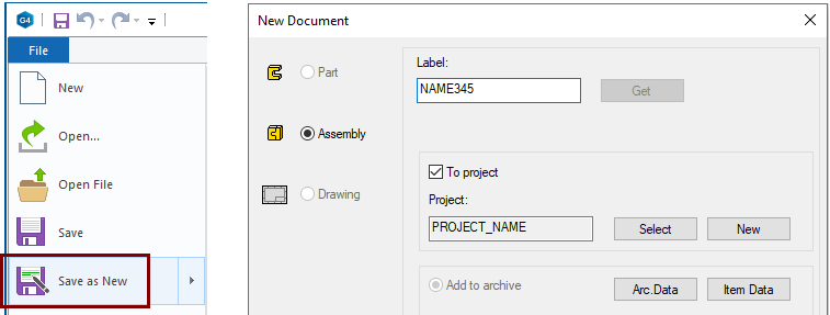 Right-click function: New > Part