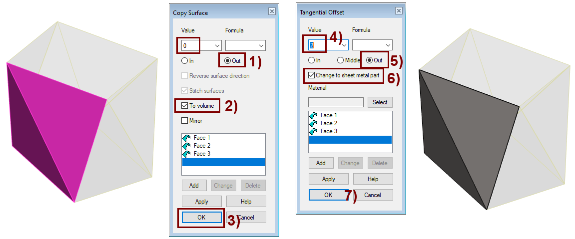 - Enter the sheet metal thickness value: 2, shown in the figure 4).
