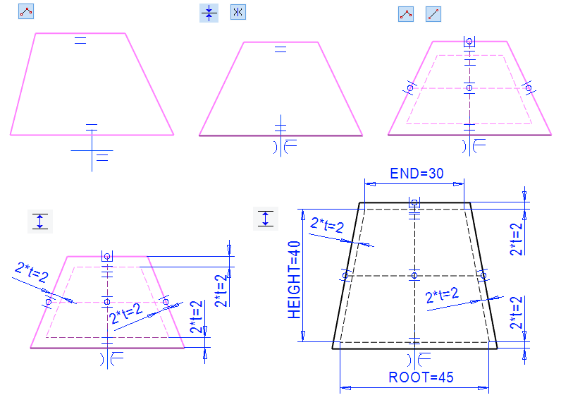 • Model the shape of the feature as dimensionally variable, where the material thickness of the plate is expressed by the variable: t.