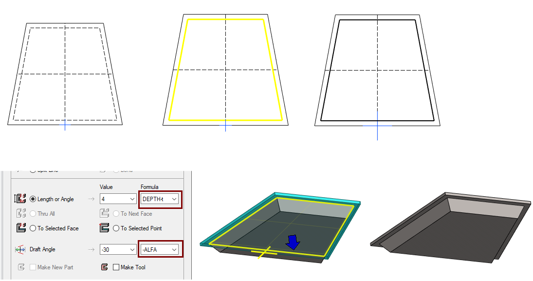 • Draft Angle: -30, formula: -ALFA.