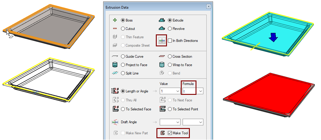 • Operation: Boss and Extrude, also with Make Tool