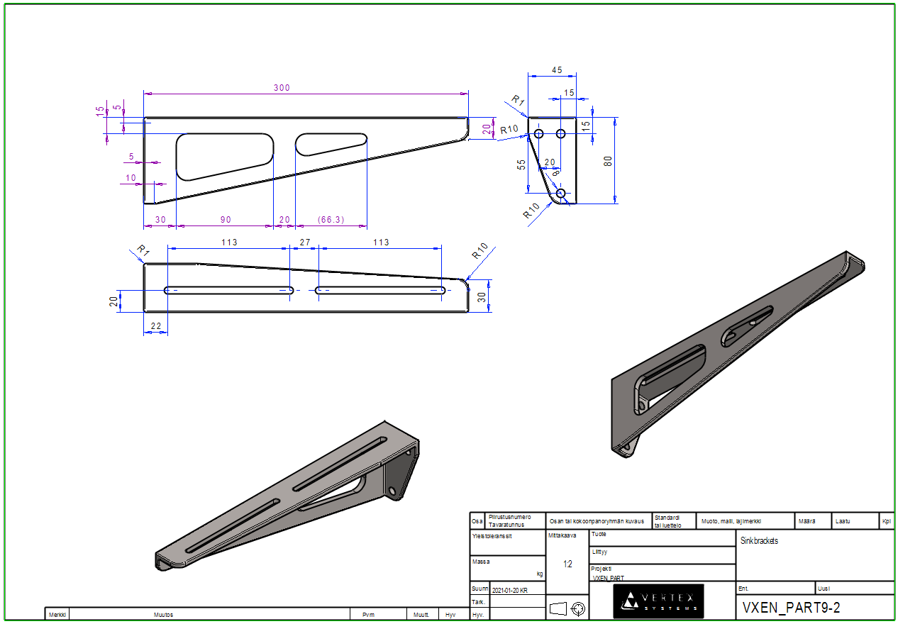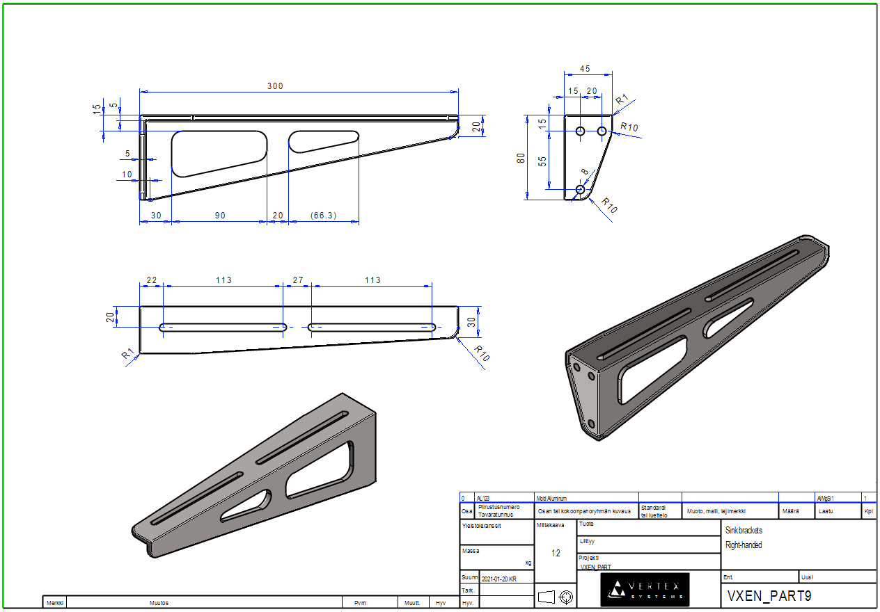 Create a drawing for a right-handed bracket.