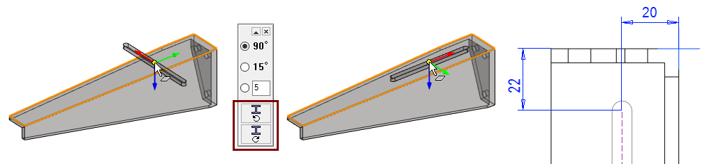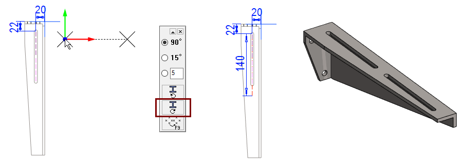 If necessary, turn the auxiliary geometry parallel to the bracket (90 ° clockwise in the figure).