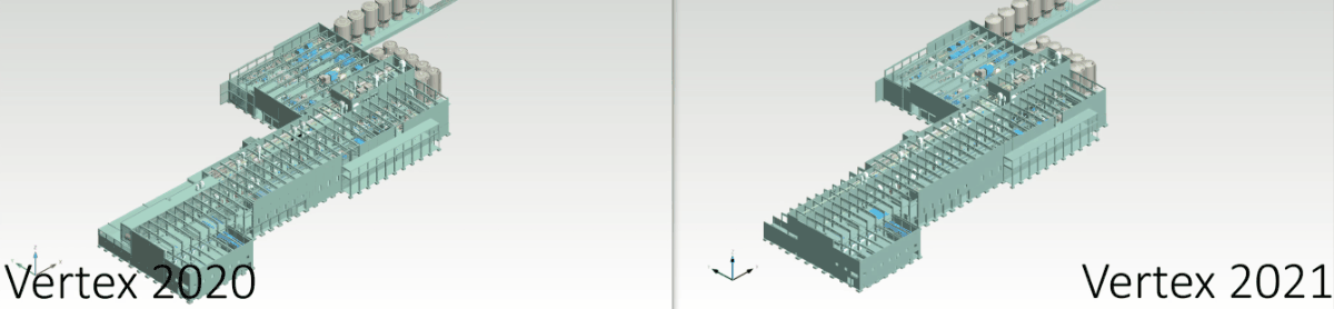 5. Benchmark was conducted in September between the release version 2020 and development version 2021 of Vertex G4 and Vertex BD software. In the test, average frame rate was measured when using Nvidia Geforce GTX 1060 graphics card. In release version 2020 the average frame rate was 1.15 frames per second and in development version 2021 the average frame rate was 58.5 frames per second. The tested system configuration had Intel i7 7700K processor and 16 gigabytes of RAM.