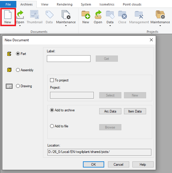 Create a new part: Sheet Archives > Create new document > Part > OK.
