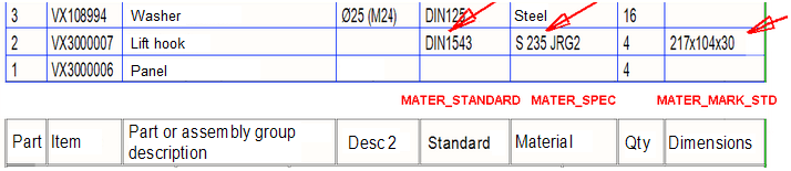 - MATER_SPEC - material item's field for material (field name in the database SPEC)