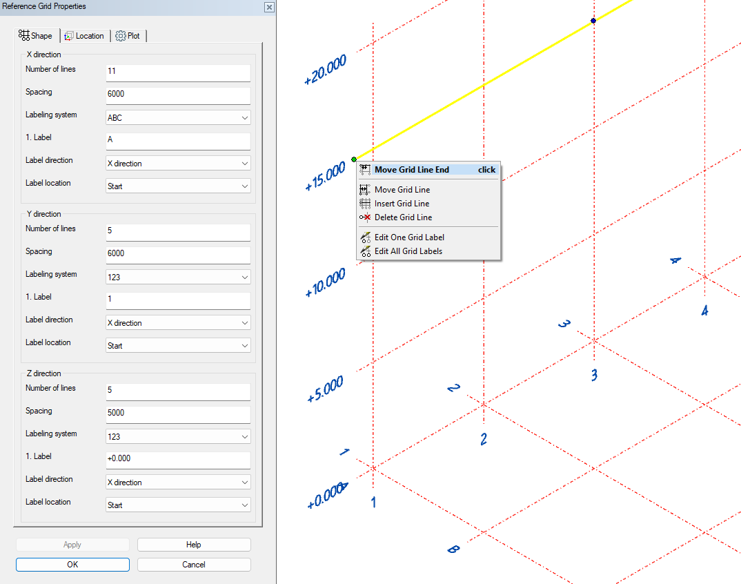 An existing reference grid can also be edited directly from the model using interactive tools. You can move, add, and delete lines and edit annotations either one at a time or in bulk.