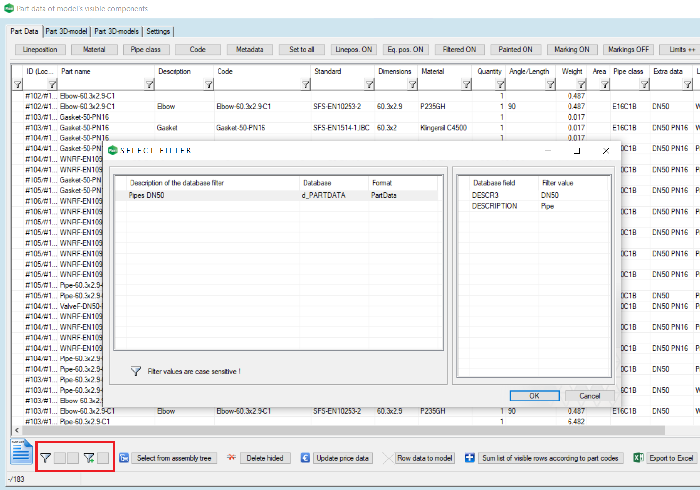 You can now save frequently used filters when you are using the Data of model's visible parts function. (PLANT-2514)