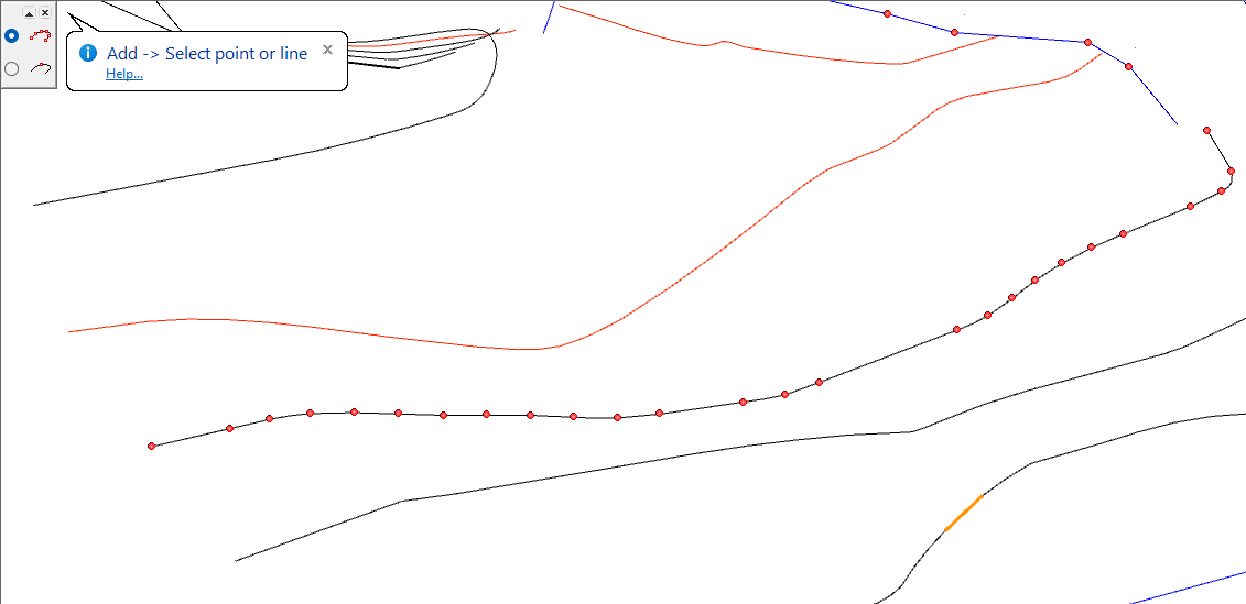 The program automatically searches for all points of a continuous chain of lines when you add terrain points with the selection option Select all points of a line. It happens when one or more lines connect to the ends of the selected line. It is necessary when the height curves have imported originally from a DWG file. The lines representing them may consist of several line segments. (Vertex ID: PLANT-4310)