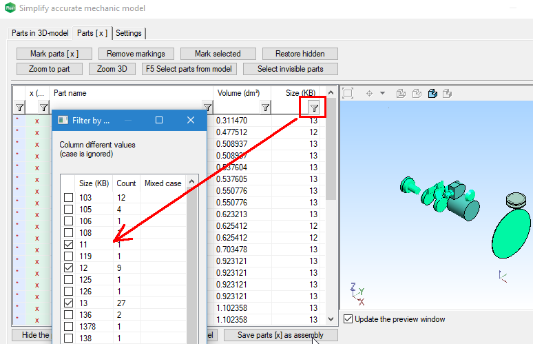 - Improvements in a part size calculation.