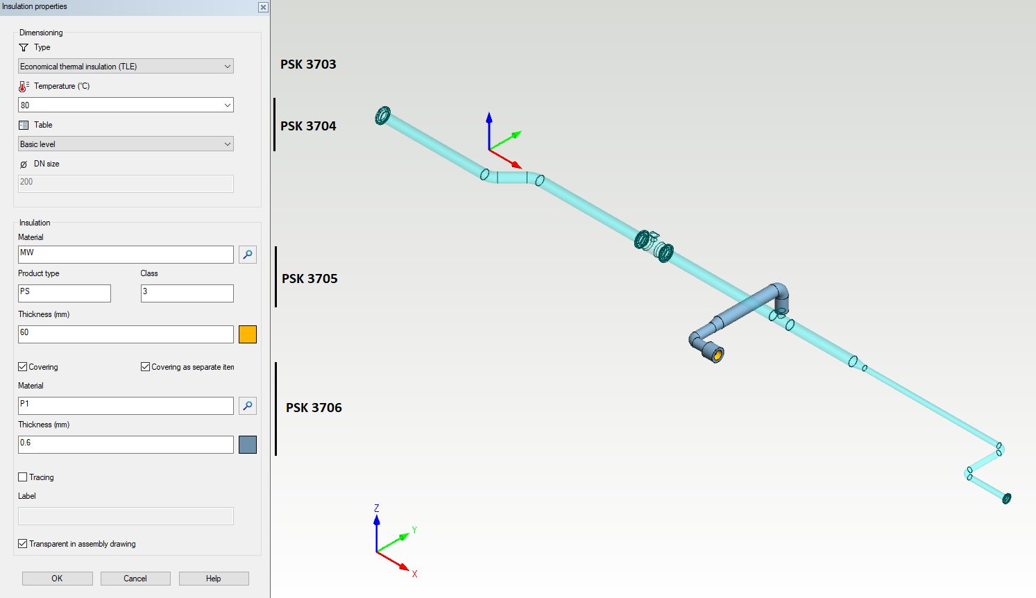 You now have access to all the material options of group 37 PSK standards for insulation and coverings.