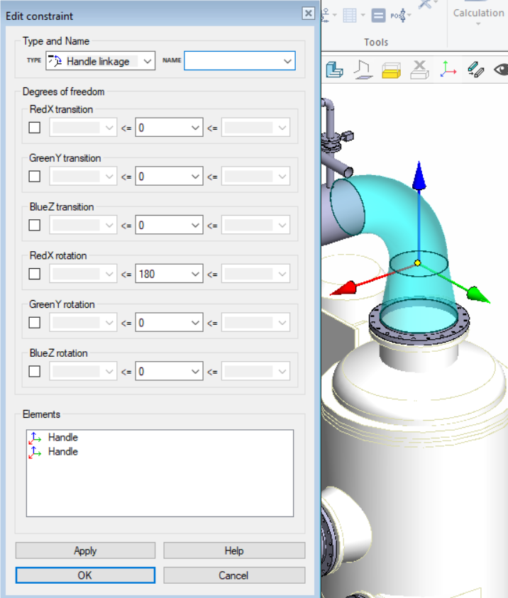 Handle linkage editing dialog layout is now the same as the other constrait dialogs. In the dialog you can change the handle join elements in the same way as in other condition dialogs, for example surfaces. The degrees of freedom of the coffee association are given in the dialogue in the same way as before.