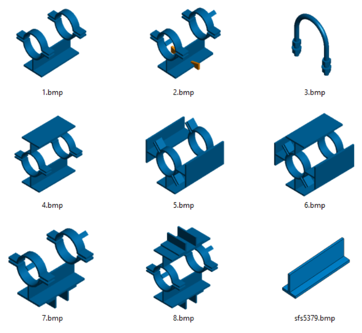 If the user selects a material for the support, then the sub-parts of the support will also receive the same material, excluding the sub-parts of the spring and hanger supports. The material previously selected by the user for the support type can be emptied, in which case the program uses the default materials for the support and its subparts.
