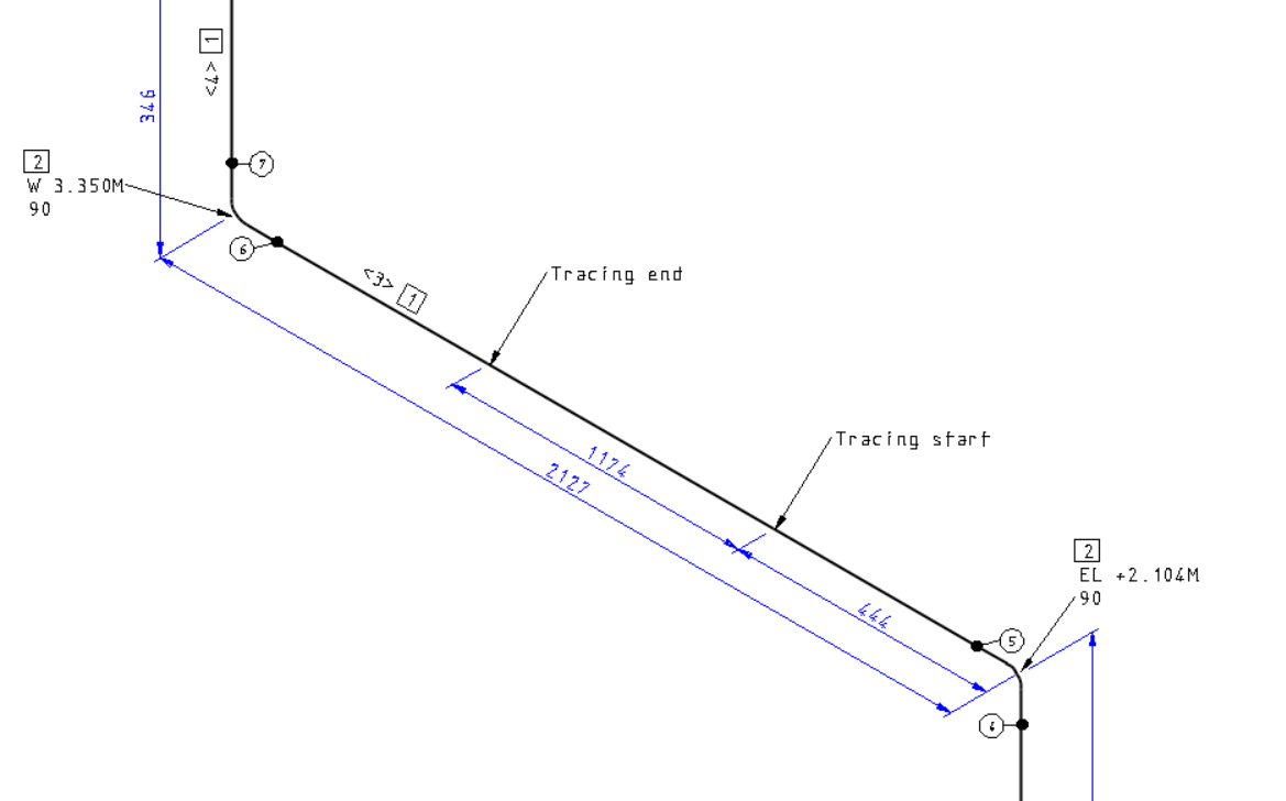 We have added a new method to illustrate a partial tracing in the isometric drawing. You can define the starting and ending point of the tracing by using special isometric symbols. The program also adds dimensions for the tracing in the isometric drawing. (PLANT-2357)