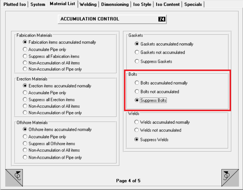 You can now suppress bolts from the isometric's parts list. This switch didn't suppress the bolts in the earlier versions. (PLANT-3833)