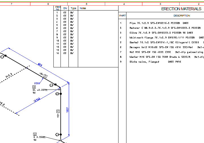 It is often desirable to have a weld number list in isometeric drawing, where additional information for weld seams can be entered. Using the Isogen settings file FINAL.WDF, the welding table is now available in the desired shape and position in the isometric drawing. (PLANT-3659)