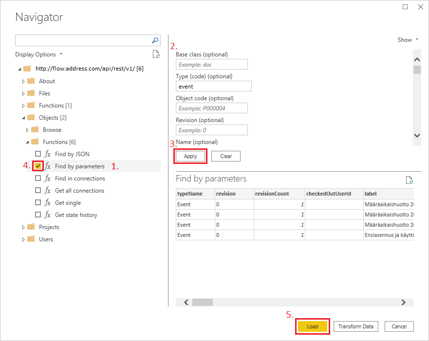 - Get the data using the Load button.