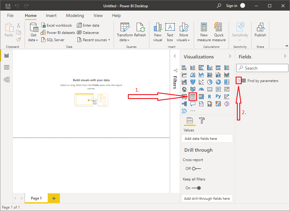 - Choose Table in the Visualizations section