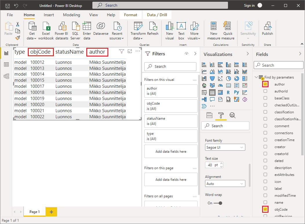 You can also create queries through the Flow connector directly in the Power Query Editor using the M script language. Using the M language you can create more versatile queries and process the data before creating a report. You can see examples of using the Flow connector via the M language by first making a query using the graphical interface and then opening the query in Power Query Editor's Advanced Editor (button in the Home tab's Query group).