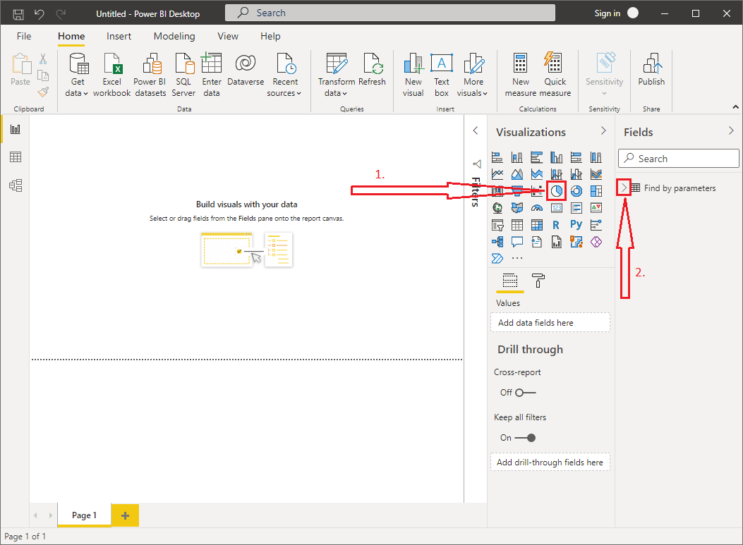 - Choose Pie chart in the Visualizations section