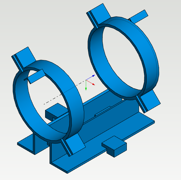 Select the function Two-Point Line from the group Lines > Draw the centerline. The length itself does not matter as long as the other end of the line is in the middle of the support (at the origin). In the video, the centerline is drawn from the outer edge of the clamp to the center of the support.