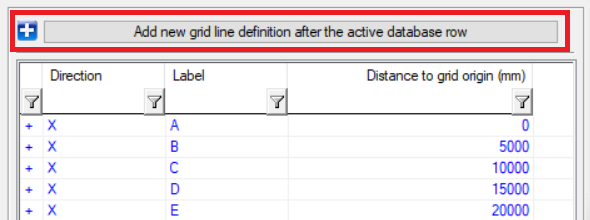 You can insert, define, and name grid lines freely as you have been able to do earlier. The program now adds automatically 5000 mm to the previous value for the next grid line. You can alter the added value by chancing it for the first added row. The program uses that value for the following rows. (PLANT-3334)