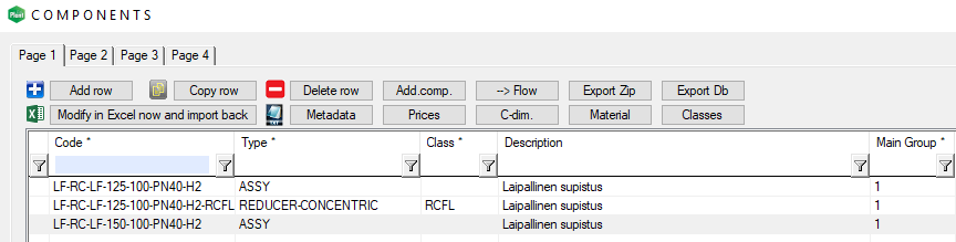 The user can define a different class for the pipe assembly, for example, RCFL.