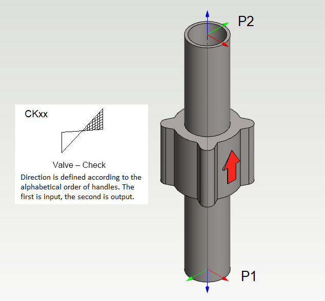 Now the relative position of the check valve's handles in alphabetical order determines in which position the check valve symbol is drawn on the isometric drawing.