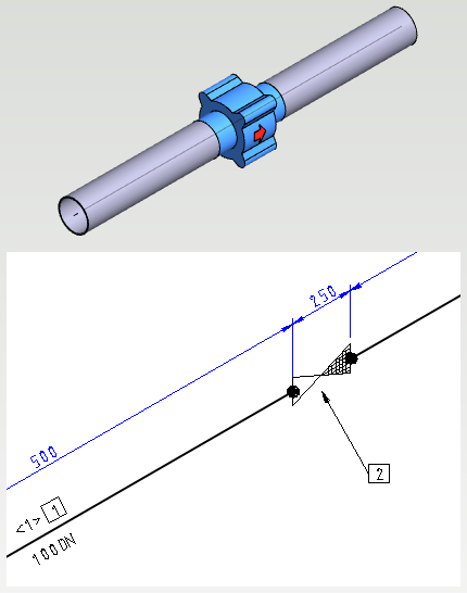 This change has an impact on how the pipe assembly behaves in the isometric drawing and its parts list.