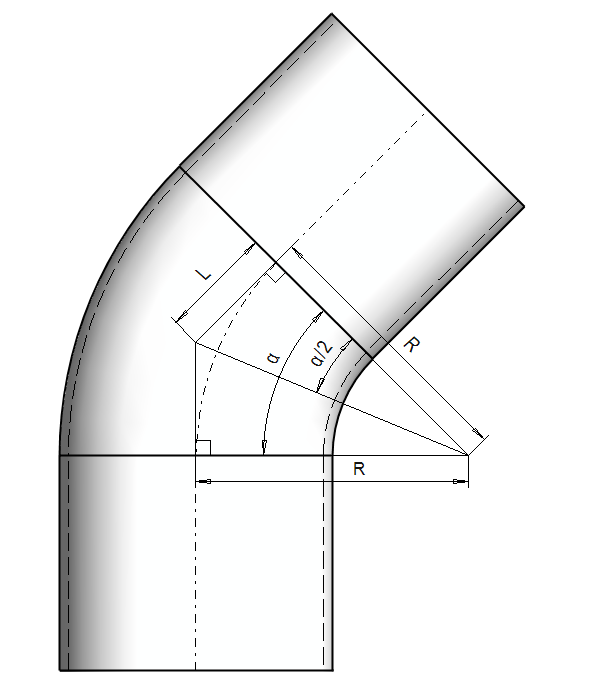 When defining the radius, the dimension L is determined from the curved portion of the centerline. The straight sections of the centerline are not included in the calculation.