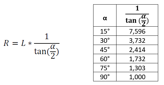 In these cases, the Radius (R) of the elbow is calculated by the following formula: