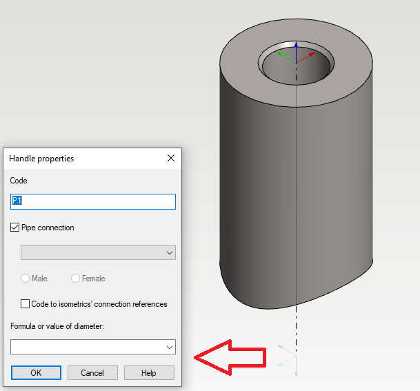 You can also modify the direction of the handle axes afterward: Open the pipe components model > Working window > Right Mouse Button > Other Functions > Edit Named Elements...