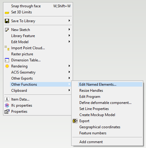 Open the model > Right mouse button in the working window> Other Functions > Edit Named Elements...