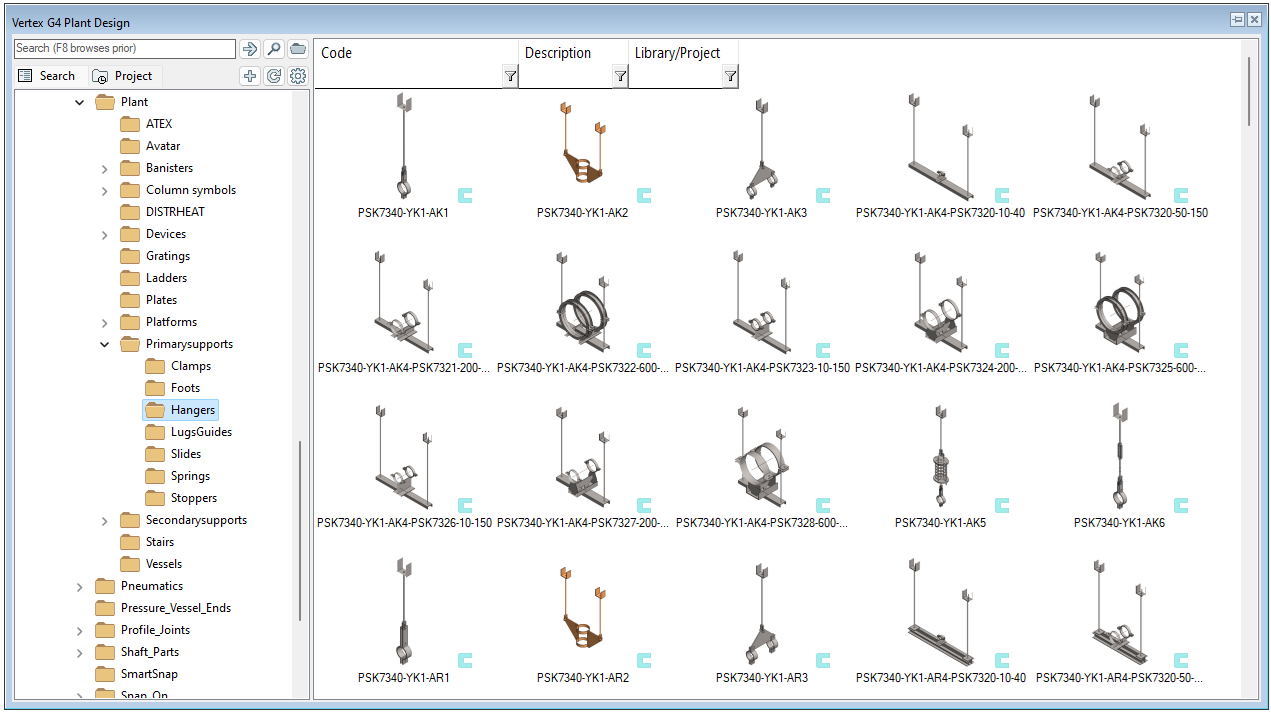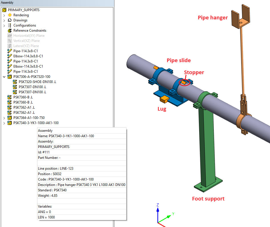 We have completely updated and modernized our primary support library. We modeled the support assemblies and parts according to the dimensions of the PSK 73 group standards. You now have access to a wider range of primary support structures, as we have modeled previously missing hanger supports such as the upper-end construction YK6 and lower-end construction AK6 and their variations. The updated support library works with Flow.