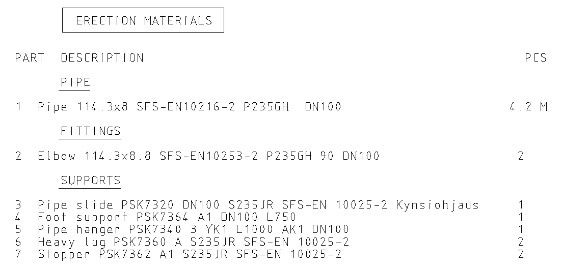 Therefore, only one line per support is visible in the parts lists. Lugs and stoppers are still listed as separate lines.