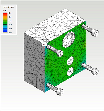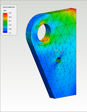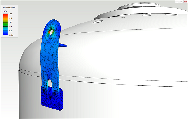 Von Mises -stresses are visualized in the surfaces of the 3d model parts.