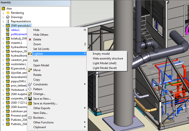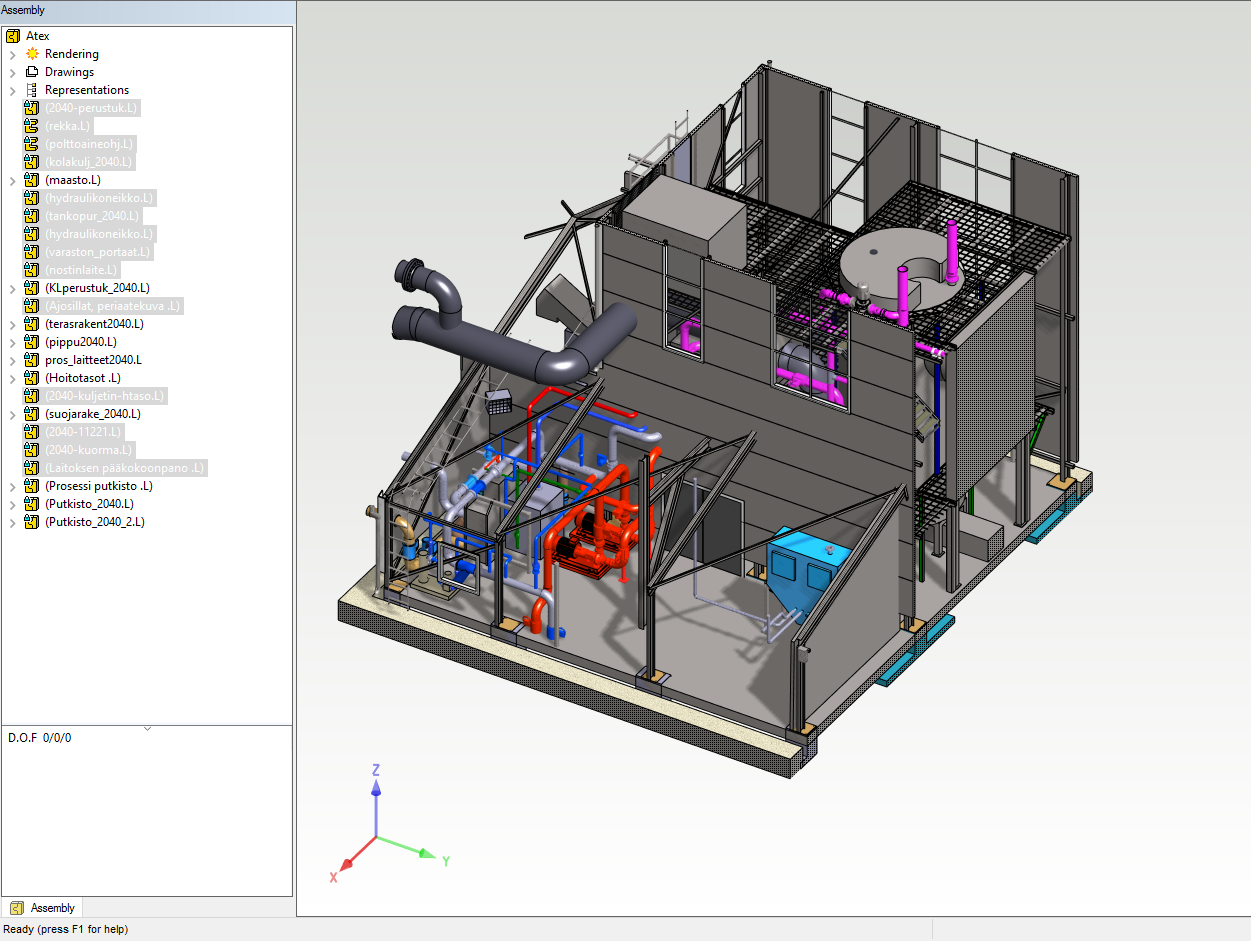 Vertex G4Plant is a 3D CAD (Computer Aided Design) software made in Finland. The user interface language can be selected either English or Finnish in Vertex G4Plant Design. You can design industrial plants and plant related equipment and structures either by modeling in 3D or by drawing in 2D. G4Plant software includes special functions for most plant design requirements together with all the functionality of Vertex G4 mechanical design software. You can use these functions in your design work either in 3D modeling or you can create 2D drawings without making the 3D model first. The software also includes a document archive database for a basic project document management.