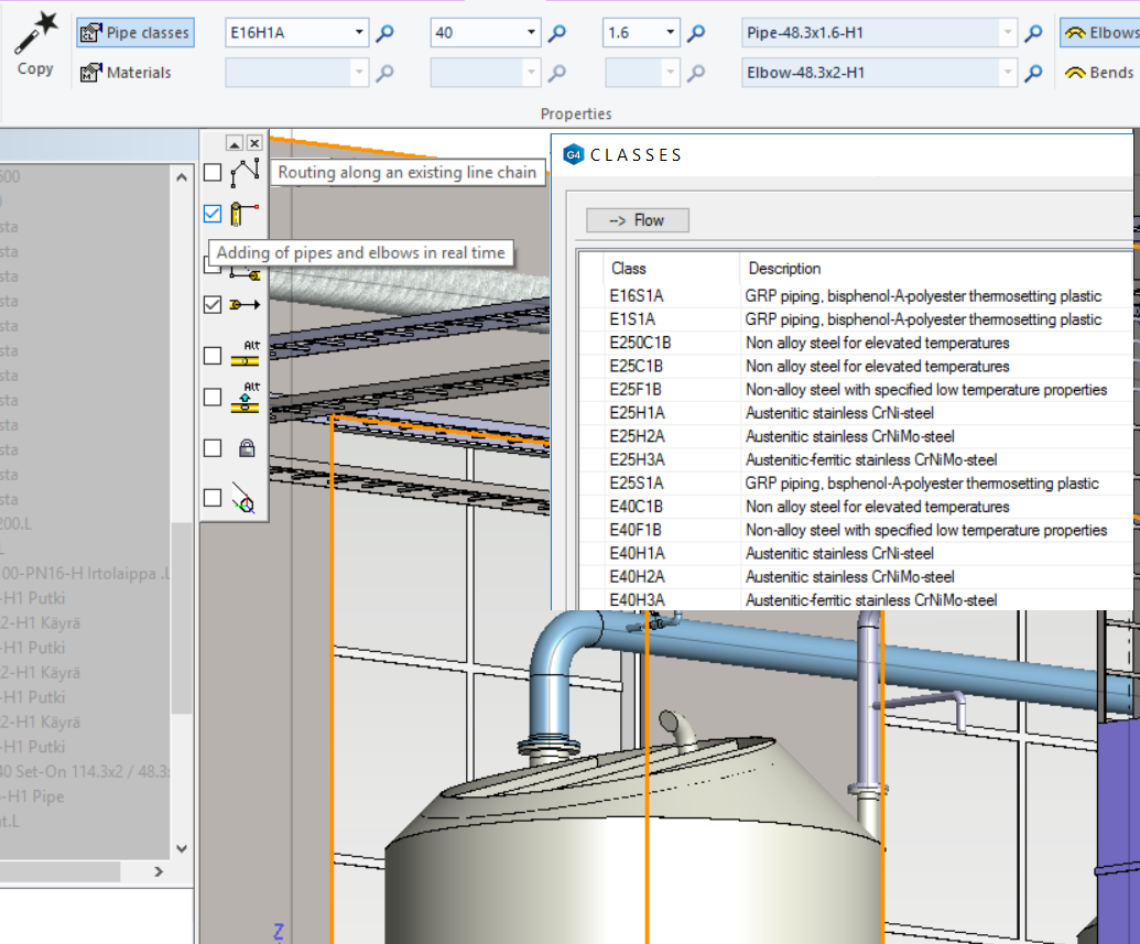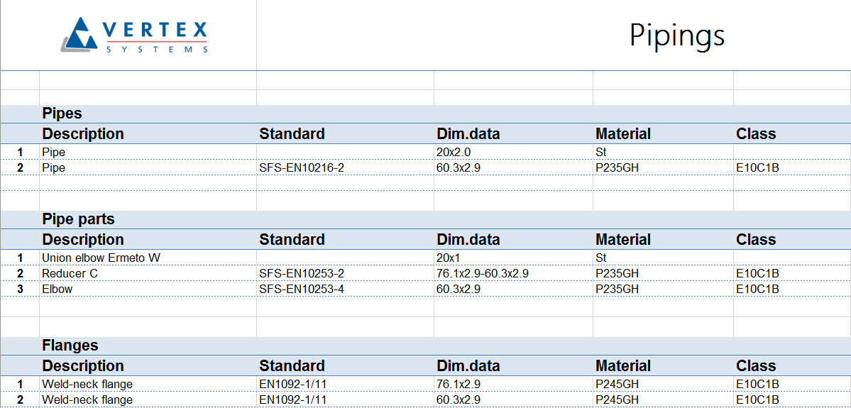 Vertex G4Plant contains as a default a pipe classes according to a PSK standard (Group 42). We keep these pipe components up to date. You have a possibility to add your common pipe components to the library.