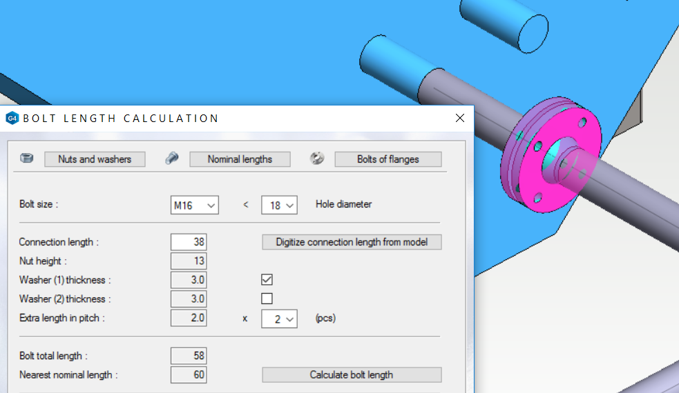 You can select a pipe size, pipe class, material and design values directly from the PI diagram or project's diagram data, if you are using the Vertex G4 PI software.