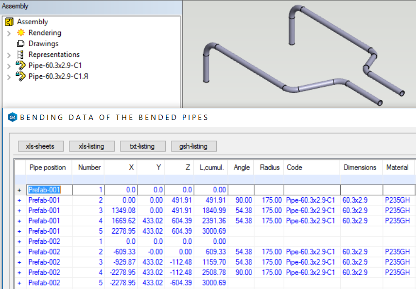 Exploit bending tables from the bended pipes and import them to a CNC bending machine. Each pipe has a predefined bending radius in the database, which you can change according to your requirements.
