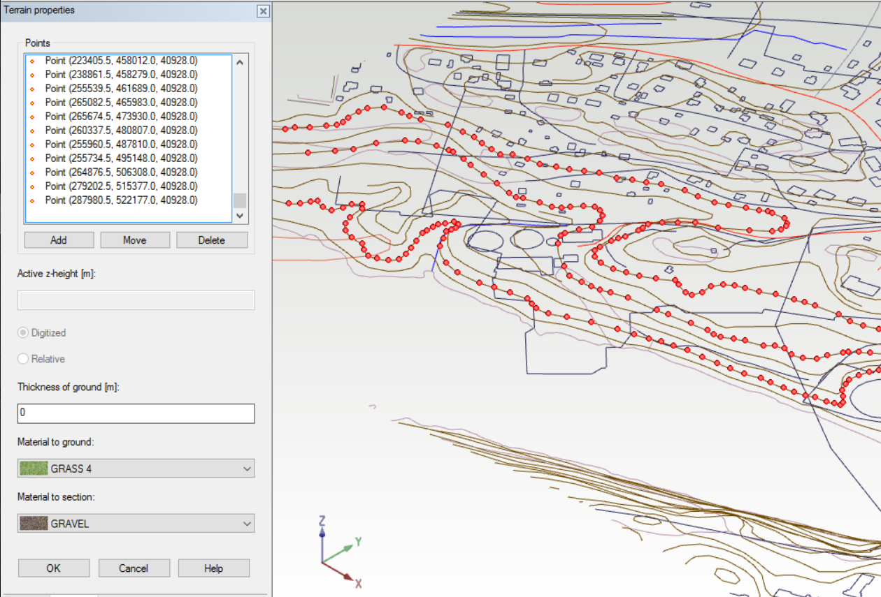 Add a terrain to our assembly as a new part with specific Add Terrain tools. Exploit for example a 3D DWG file, which is including contours, in your assembly. The program allows you to modify the terrain by adding, moving or removing terrain points. You can also adjust a thickness of a groud and select materials for surfaces and sections.